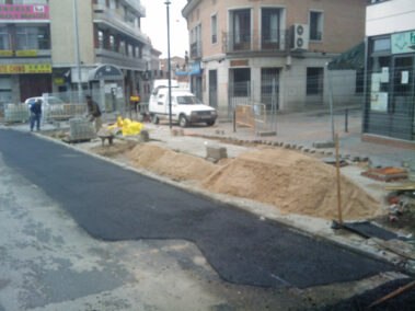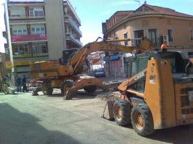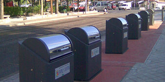 Soterramiento de contenedores mediante apertura y elevación hidráulica en la calle San Sebastián, en las confluencias de la calle Atazar y calle de la Ventanilla.